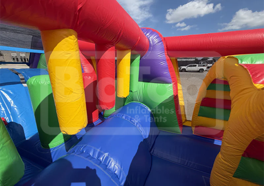 The Dura Lite 25' Fun Obstacle Course w/ Pool is the Perfect Family Inflatable. Unlike box store inflatables, the 25' Obstacle Course is built with a heavy-duty vinyl as compared to a cloth-type material you would get from a lower quality inflatable.
