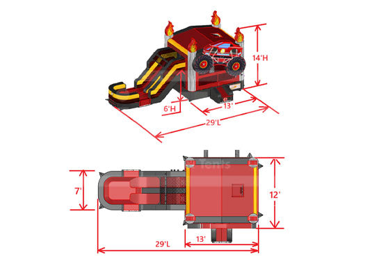 Order your Big Top Inflatables Monster Truck Bounce House Combo with Double Lane Slide today and let the good times roll!