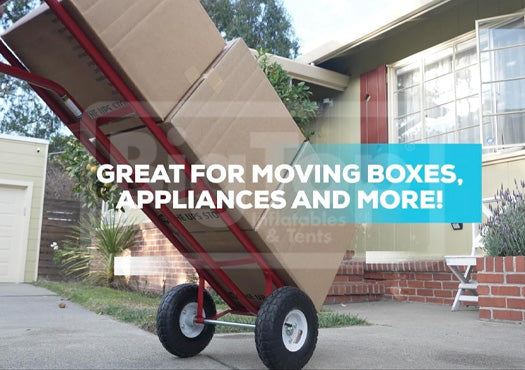 The Big Top Mover SM 2-Wheel Heavy Duty Hand Truck for Sale by Big Top Inflatables. The Big Top Mover SM Hand Truck is built tough to move inflatables, tents, tables and chairs. Plus, the rubber wheels make this Hand Truck and Excellent product for moving larger Inflatables and Party Rental Equipment.